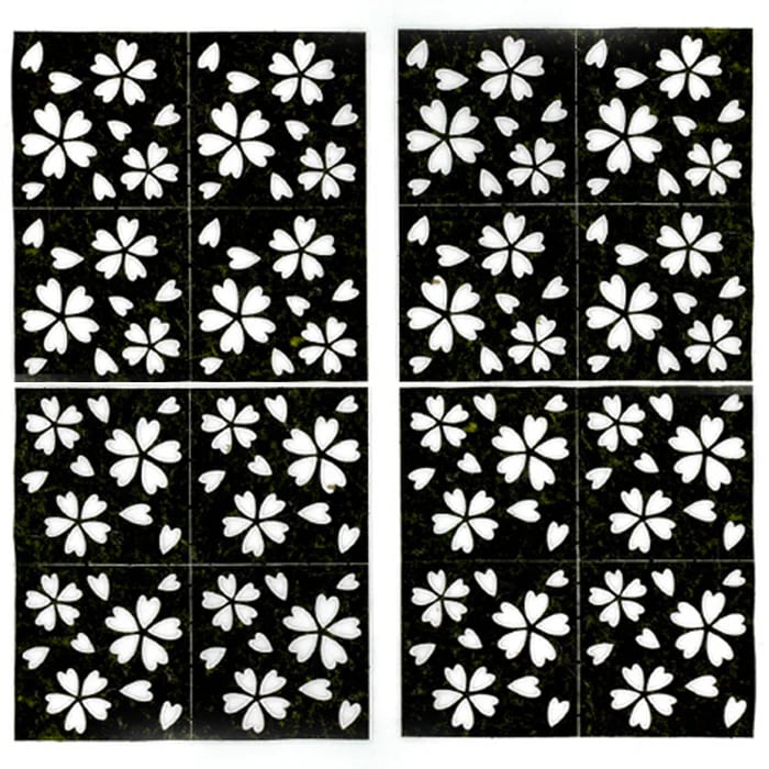 さくら前線、北上中?! はらはらと散るさくらの花びらを切り抜きました。5センチ角にきれるので、三角おにぎりの飾りや、俵型のおにぎりに巻いてもおしゃれです。フタを開けたら、春の景色が広がる、小粋な春のお弁当にぴったりです。